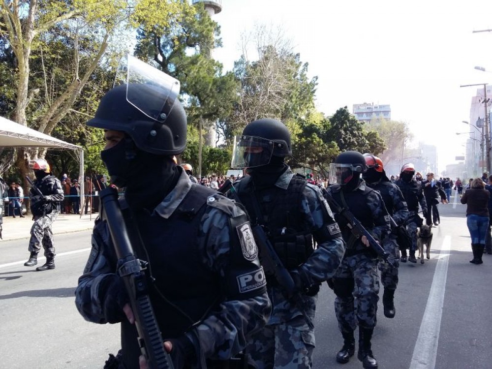 Extremamente importante para a história do Rio Grande do Sul, a Brigada Militar deu início às comemorações do dia com a passagem dos integrantes da reserva altiva, militares que compõe o efetivo operacional no município, viaturas que realizam o policiamento ostensivo e comunitário, além dos projetos sociais desenvolvidos pela instituição, como é o caso do Proerd. Policiais do Pelotão de Operações Especiais e do Canil surgiram de trás de uma cortina de fumaça formada pelas cores da bandeira do estado.