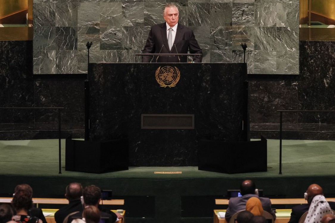Após discursar a líderes mundiais na abertura da 72ª Assembleia Geral das Nações Unidas, em Nova York, Temer afirmou que o Brasil sempre defendeu o diálogo na solução de conflitos entre países. “Sabe que a posição do Brasil é sempre uma posição de conversa, de diplomacia, de solução diplomática. Evidentemente que, sendo uma posição de conversa, solução diplomática, não podemos também nos manifestar em relação à quem se manifesta aqui nos Estados Unidos. A nossa pregação sempre foi esta, solucionar diplomaticamente”, disse Temer a jornalistas.