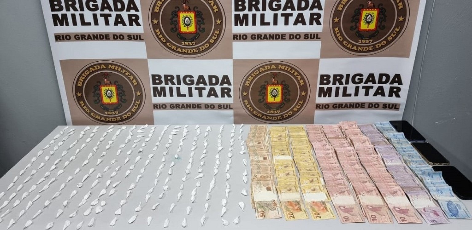 Já no Lar Gaúcho, outra guarnição do 5º BPChq desconfiou das atitudes de um adolescente ao perceber a aproximação da viatura e fez a abordagem. Durante a revista pessoal, os brigadianos encontram com ele pouco mais de cem gramas de crack e a quantia de R$ 10 em dinheiro.