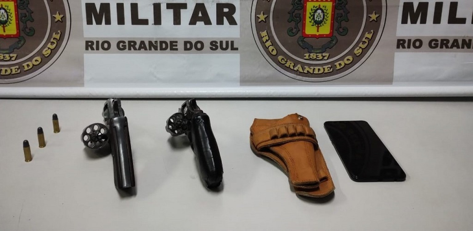 Durante a revista pessoal, os policiais localizaram com ele dois revólveres calibre 38, três munições do mesmo calibre, um smartphone e um coldre. O homem recebeu voz de prisão e foi encaminhado à Delegacia de Polícia de Pronto Atendimento (DPPA) para o registro.