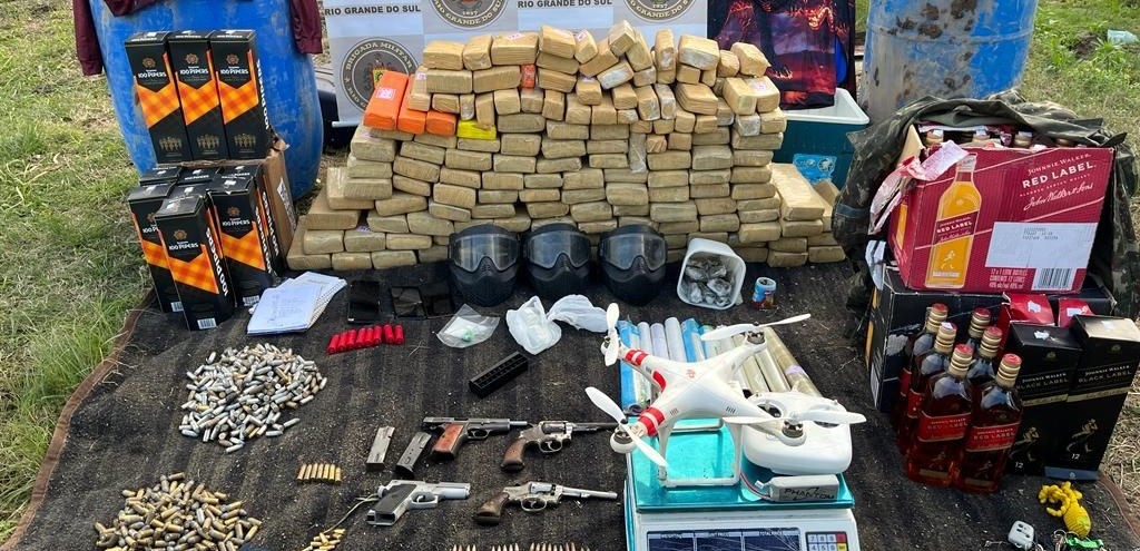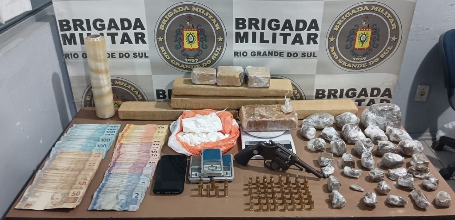 Durante a revista pessoal, foi localizado com ele um revólver calibre 38. Na sequência, os policiais apreenderam 5,8 kg de maconha, 614 gramas de cocaína, 860 gramas de crack, quatro balanças de precisão, sete munições calibre 38, outras 47 de calibre 9mm e a quantia de R$ 7.933 em dinheiro.