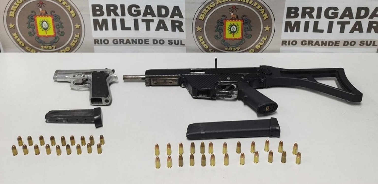 Com ele, os brigadianos localizaram uma submetralhadora calibre 9mm, um carregador, uma pistola calibre 380, outro carregador, 24 munições de 9mm e outras 18 de calibre 380. O homem recebeu voz de prisão e foi encaminhado à Delegacia de Polícia de Pronto Atendimento (DPPA) para o registro da ocorrência.
