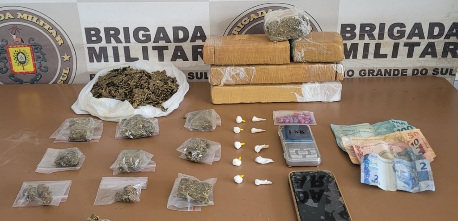 Na primeira ocorrência, um homem foi preso portando 2,9 kg de maconha, dez porções de cocaína, 30 comprimidos de ecstasy, uma balança de precisão, um telefone celular e a quantia de R$ 364 em dinheiro. Um automóvel também foi apreendido na ocasião pelos policiais militares.