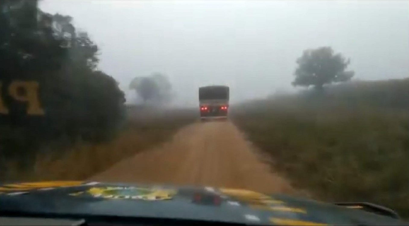 Ele entrou em uma estrada de chão para tentar despistar os policiais que mantiveram o acompanhamento tático até conseguir pará-lo. Por conta das dimensões da carreta, por vezes os agentes acreditaram que o veículo fosse tombar devido à velocidade elevada, os desníveis do piso e as curvas fechadas.