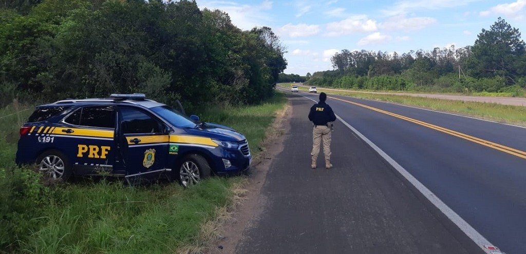 Durante a perseguição, os policiais solicitaram o apoio da Polícia Rodoviária Estadual (PRE) que disponibilizou uma equipe para auxiliar na ação. Foto: Divulgação/PRF