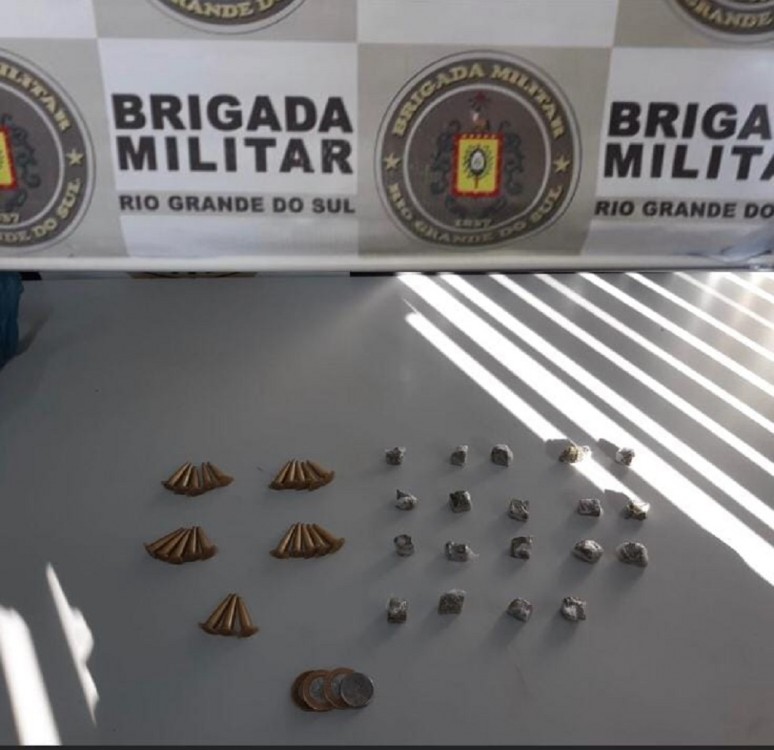 Durante patrulhamento de rotina, os PMs localizaram com o jovem 19 porções de maconha, 23 pinos de cocaína e uma certa quantia em dinheiro.