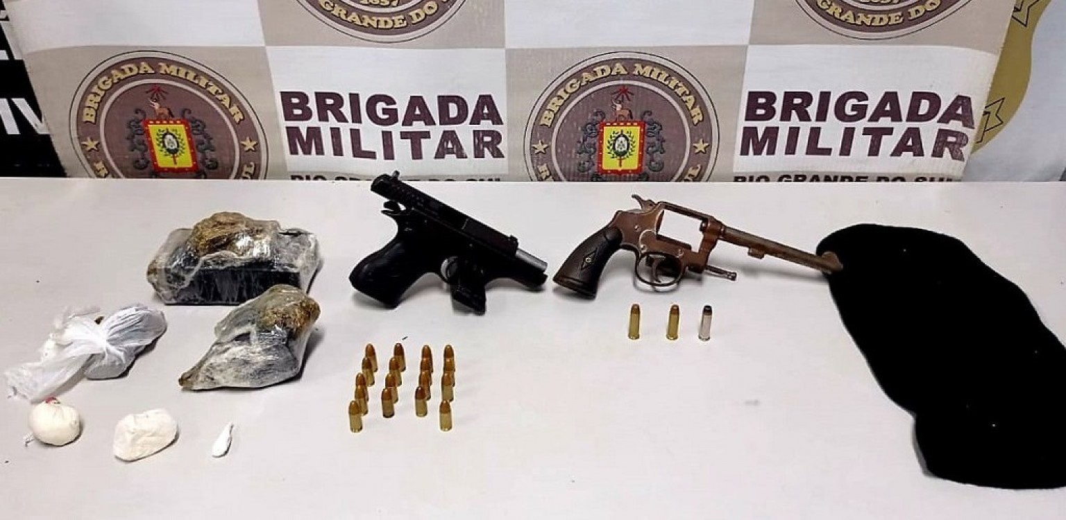 Durante a revista pessoal, foram localizados no interior da mochila que ele carregava um revólver e três munições calibre 38, uma pistola e 17 munições calibre 9 mm, e as quantias de 734 gramas de maconha e 30 gramas de cocaína. Já na manhã deste domingo, policiais militares foram despachados pela sala de operações para atender uma ocorrência de roubo a pedestre, no Cassino.