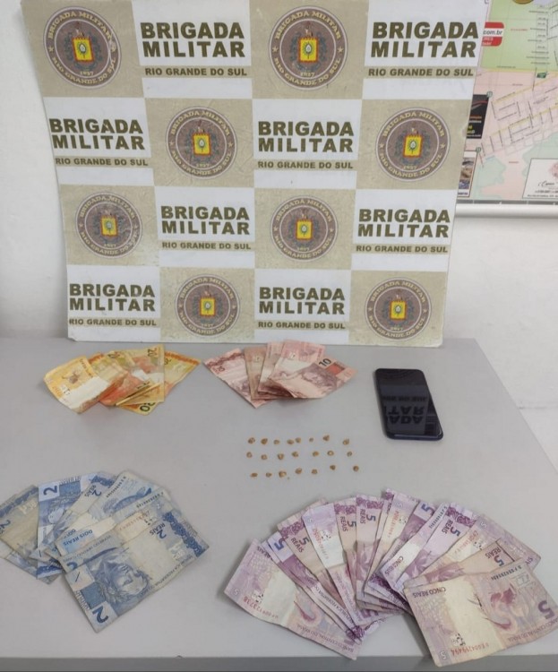 Durante o patrulhamento ostensivo pelas ruas da cidade, os PMs abordaram o indivíduo e localizaram 22 pedras de crack, um aparelho celular e R$ 241,00.