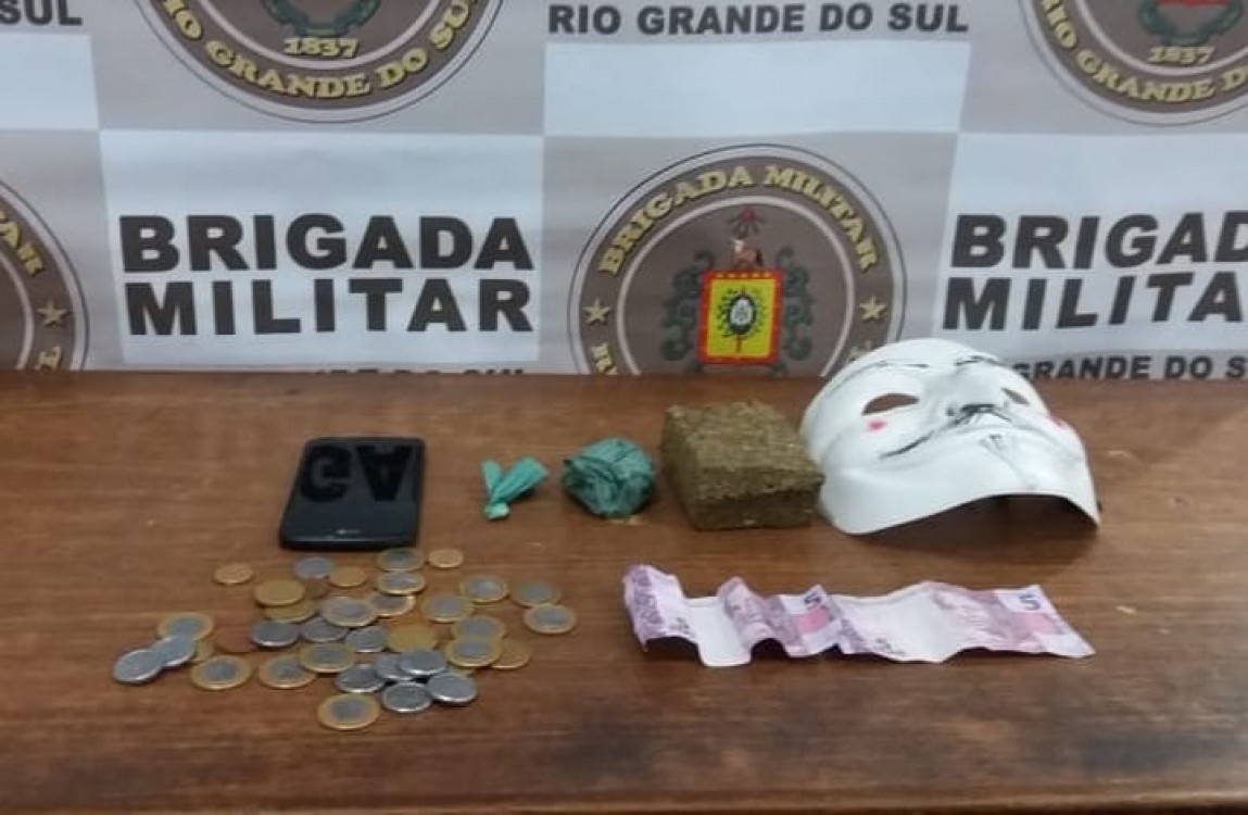 Com ele, foram localizadas 215 gramas de maconha, uma grama de cocaína, um telefone celular, uma máscara e uma quantia em dinheiro não informada pela polícia. O jovem recebeu voz de prisão e foi encaminhado à delegacia para o registro da ocorrência.