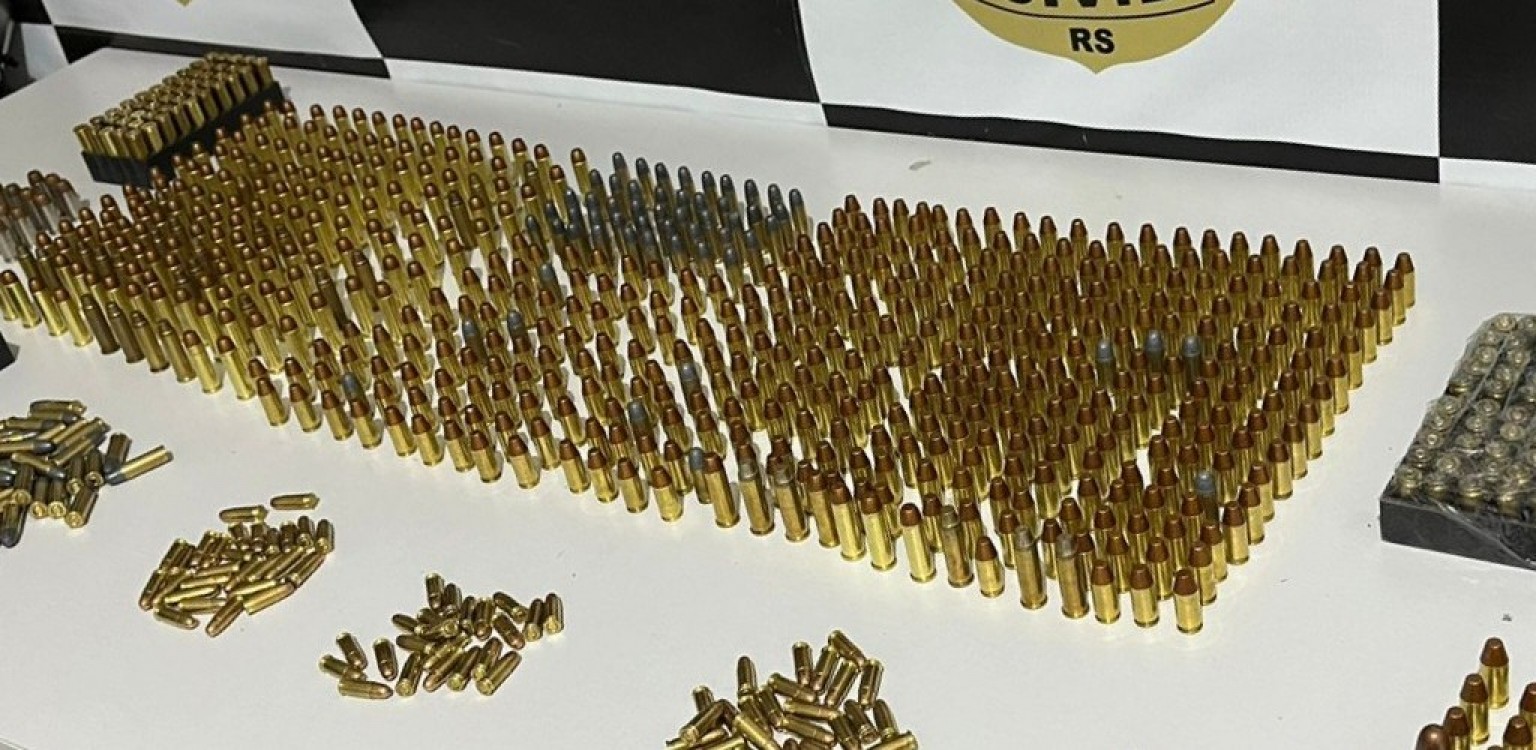 Após a abordagem e revista no interior do veículo, os agentes localizaram mais de mil munições de diversos calibres. De acordo com a Polícia Civil, o homem, de 28 anos, possui antecedentes por tráfico de drogas e associação para o tráfico, enquanto a mulher, de 29 anos, tem passagens por ameaça.