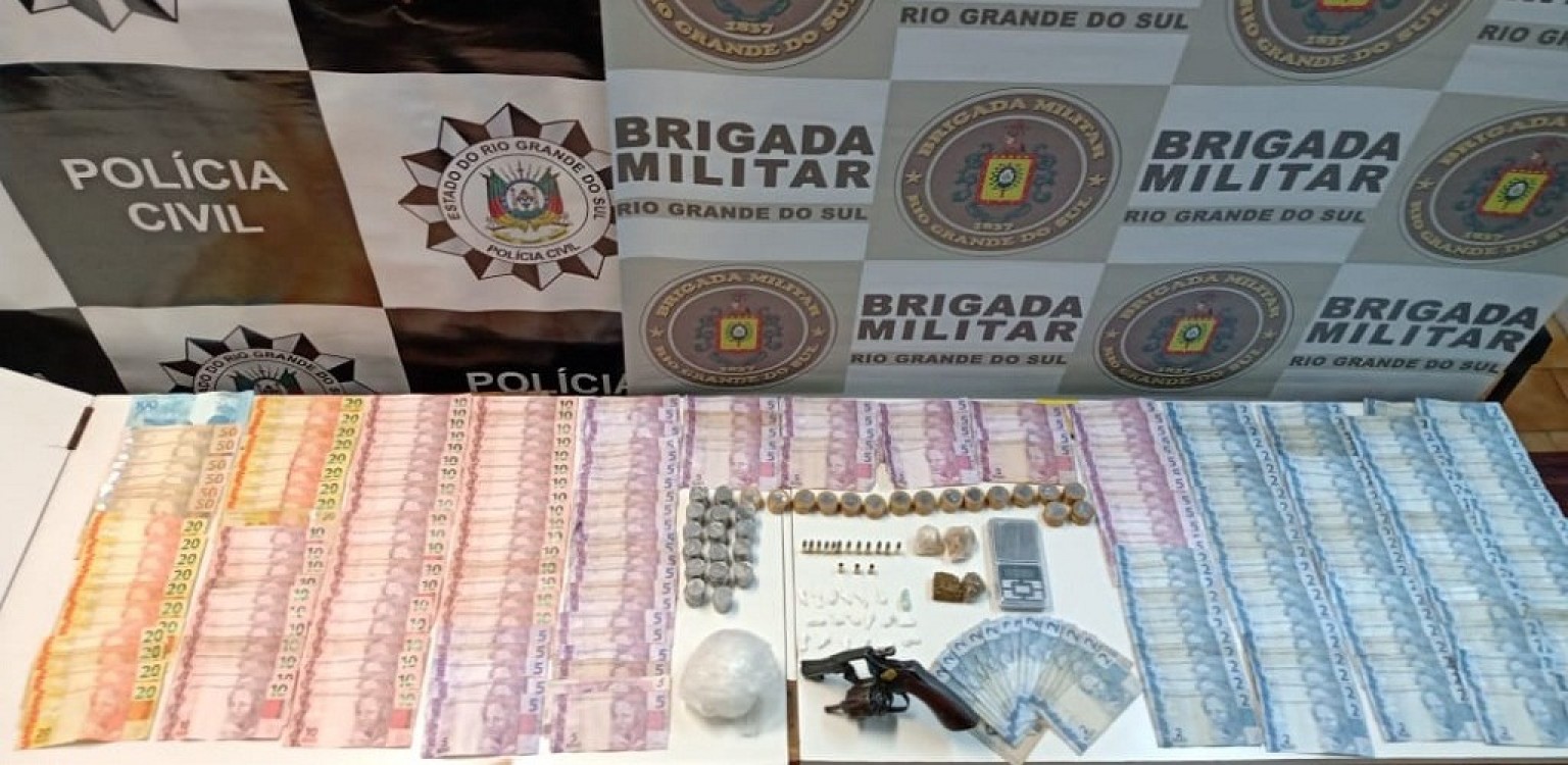 Policiais civis e militares de Arroio Grande, com apoio do 5º Batalhão de Polícia de Choque (BPChq), prenderam um casal pelos crimes de tráfico de drogas e posse de arma de fogo. O fato aconteceu no final da tarde da última terça-feira, no bairro Vidal, porém foi divulgado apenas na noite desta quinta-feira.