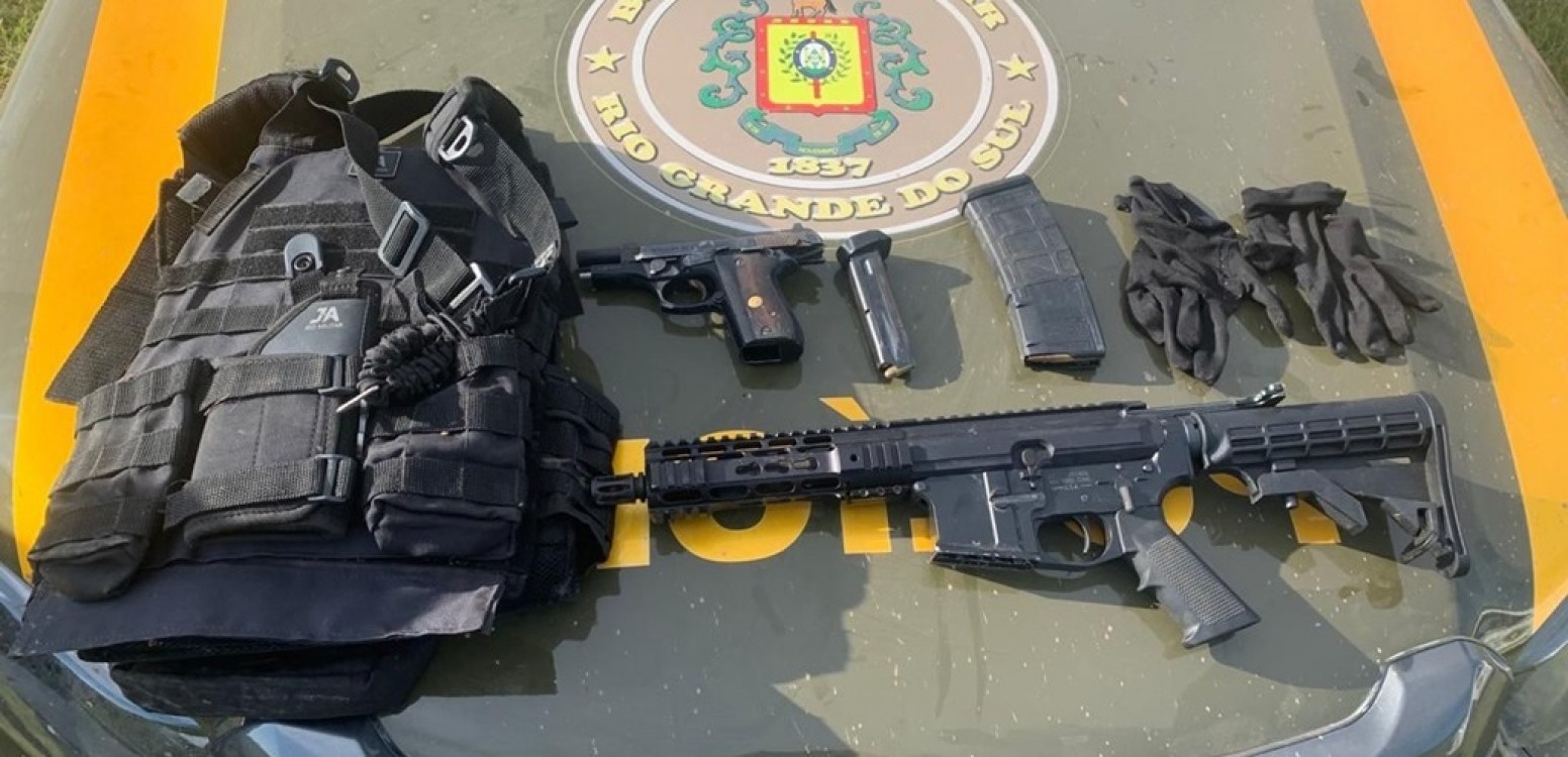 Ao chegar no local, dois homens se entregaram de imediato e foram presos. Com eles, os policiais apreenderam dinheiro em espécie, uma pistola 9mm, um revólver calibre 38, um carregador sobressalente de pistola, 35 munições de calibre 9mm, outras nove de calibre 38, sete munições calibre 380, um telefone celular e um malote do Banrisul. Já tinham sido apreendidos com o primeiro preso um fuzil, colete balístico e uma pistola.