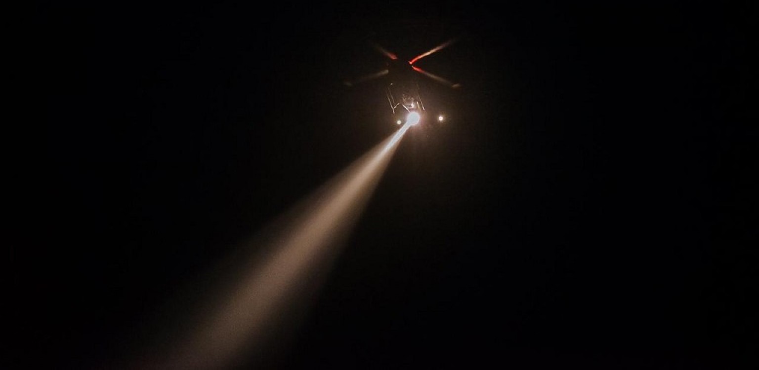 Ele também pode ser operado à noite, como na última sexta-feira, com o uso de um holofote, denominado tecnicamente de farol de busca. Fotos: Rodrigo Ziebell/Jéferson Pinto/BM