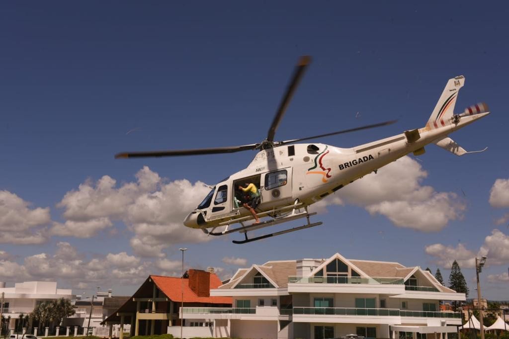 A aeronave em questão é um Agusta Westland (AW) 119 Koala, pertencente ao Batalhão de Aviação da Brigada Militar (BAvBM). Assim como o Esquilo, utilizado pelo Primeiro Esquadrão de Helicópteros de Emprego Geral do Sul (HU-51) do 5º Distrito Naval (DN), ele também pode ser utilizado em múltiplas operações e o apoio aéreo é uma dessas empregabilidades.