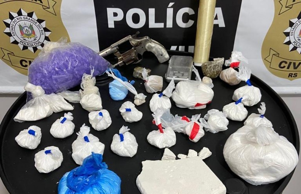 Com ele, os policiais localizaram 1,2 kg de cocaína, 60 gramas de crack, maconha, uma balança de precisão, pinos plásticos para embalar cocaína, um revólver calibre 32 e munições. De acordo com o delegado Rafael Patella, o homem preso possui antecedentes policiais pelo crime de lesão corporal.