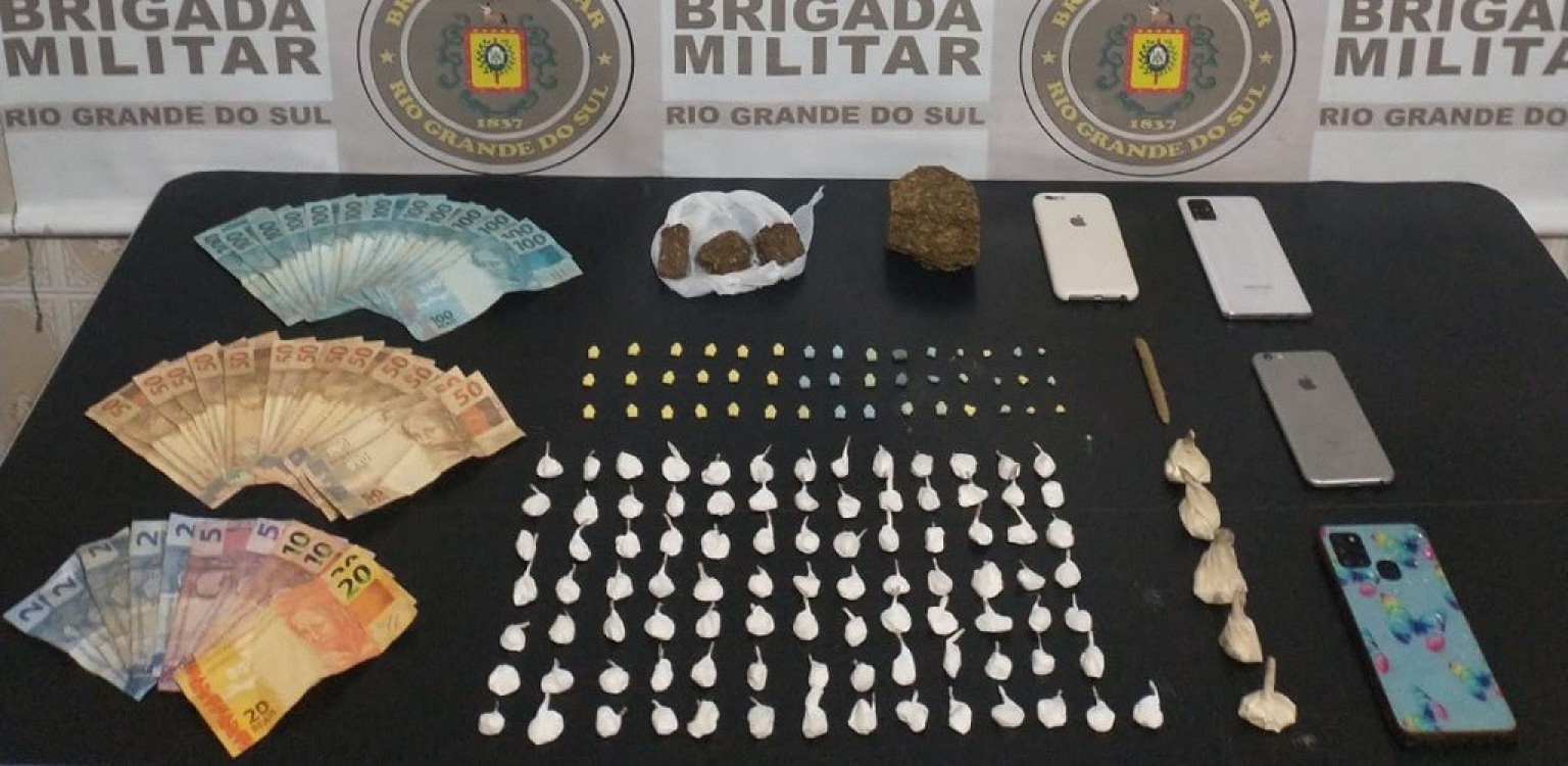 Após a vistoria no interior do veículo e a revista dos ocupantes, foram localizadas 92 buchas pequenas de cocaína, outras cinco grandes da mesma substância, 230 gramas de maconha, 43 comprimidos de ecstasy e uma quantia em dinheiro. Questionados, eles reveleram que iriam comercializar a droga durante os quatro dias do rodeio.