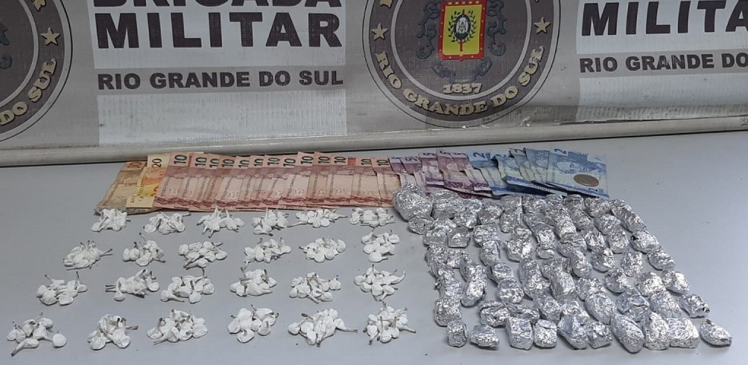 O primeiro caso foi registrado no final da tarde, quando os policiais abordaram um adolescente, de 14 anos. Durante a revista pessoal, os brigadianos localizaram com ele 239 petecas de cocaína, 72 invólucros de maconha e a quantia de R$ 236 em moedas e notas diversas, o que configura a venda de entorpecentes.