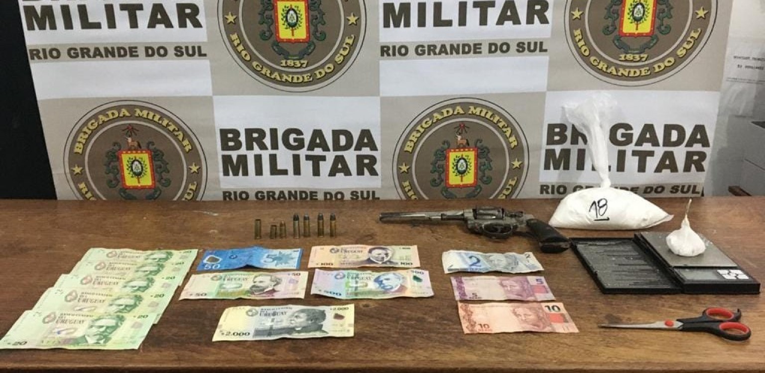 Durante a revista pessoal, os brigadianos localizaram com ele um revólver calibre 38, carregado com cinco munições, 17 gramas de cocaína, uma balança de precisão, uma munição de calibre 9 mm, 224 gramas de um pó branco ensacado, além de uma quantia em dinheiro cujo valor não foi informado. Em razão disso, o homem recebeu voz de prisão em flagrante e foi encaminhado à Delegacia de Polícia de Pronto Atendimento (DPPA) para o registro.