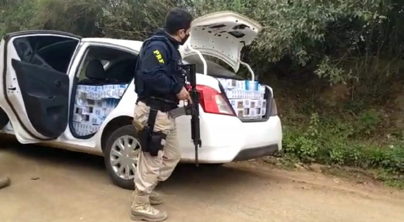 De acordo com a PRF, o setor de inteligência da instituição havia informado que um Nissan Versa, cor branca e com placas de Belo Horizonte, estava circulando na rodovia carregado com maços de cigarro. Os agentes passaram a fazer o monitoramento e encontraram o automóvel na rodovia, momento em que ordenaram a motorista que encostasse.