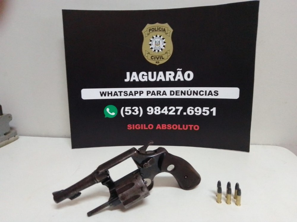 Na manhã desta sexta-feira (10), a Polícia Civil com o apoio da Brigada Militar prendeu um homem por posse ilegal de arma de fogo e receptação, em Jaguarão. Durante a prisão, os policiais realizaram buscas na residência do criminoso e localizaram um revólver furtado, munições e carne em estado avançado de putrefação.