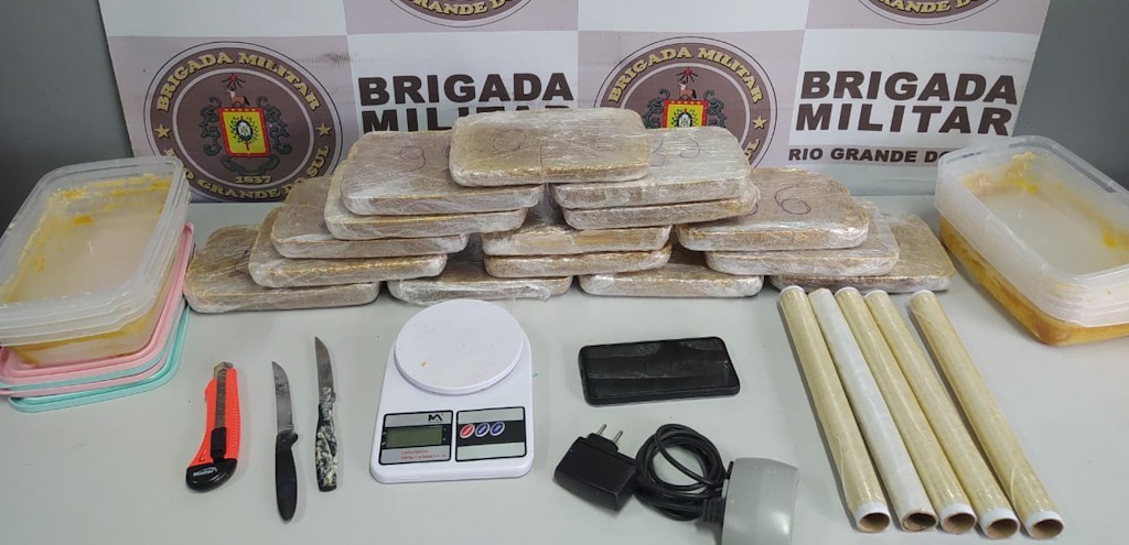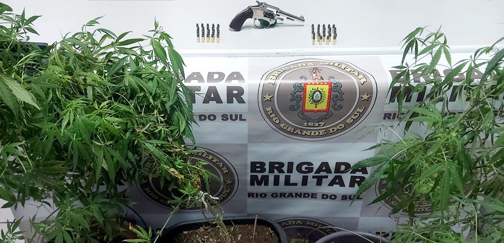 Com eles, os brigadianos localizaram uma submetralhadora 9mm, um carregador com capacidade para 50 munições, uma pistola 9mm, dois carregadores, uma arma calibre 12, 14 munições do mesmo calibre, 53 munições 9mm, quatro telefones celulares, uma touca ninja e um colete balístico.