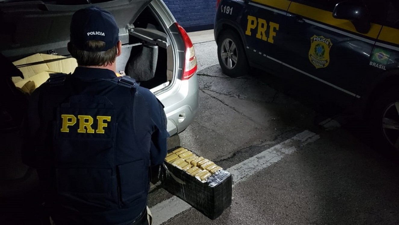 A droga foi localizada após uma vistoria no interior do carro, prática comum das ações da instituição. Foto: Divulgação/PRF