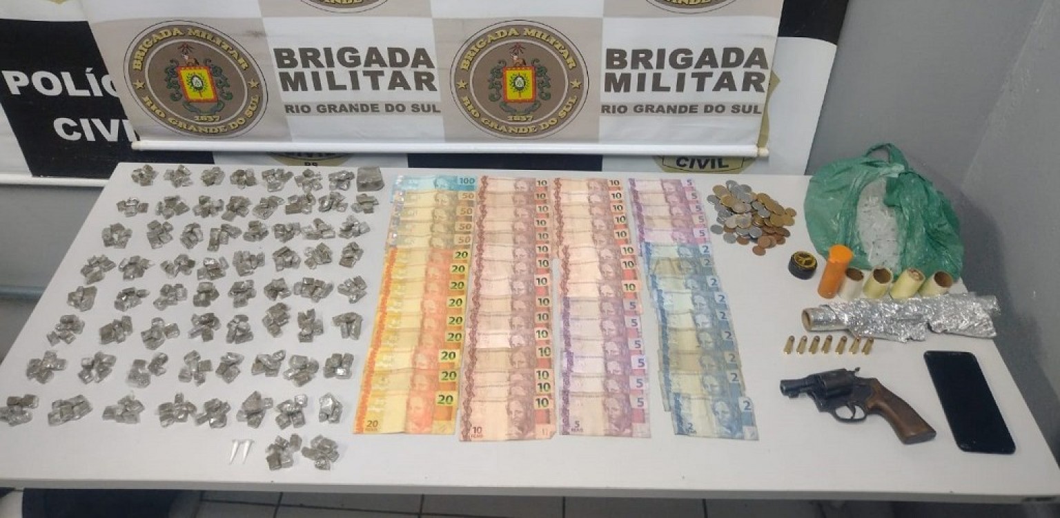 Durante a revista pessoal, os policiais encontraram na mochila carregada por ela um revólver calibre 38, sete munições, 326 porções de maconha, um pote com restos da mesma droga, duas porções de cocaína, um rolo de papel-alumínio, quatro rolos de filme PVC, uma sacola com eppendorfs, um telefone celular e a quantia de R$ 801 em dinheiro.