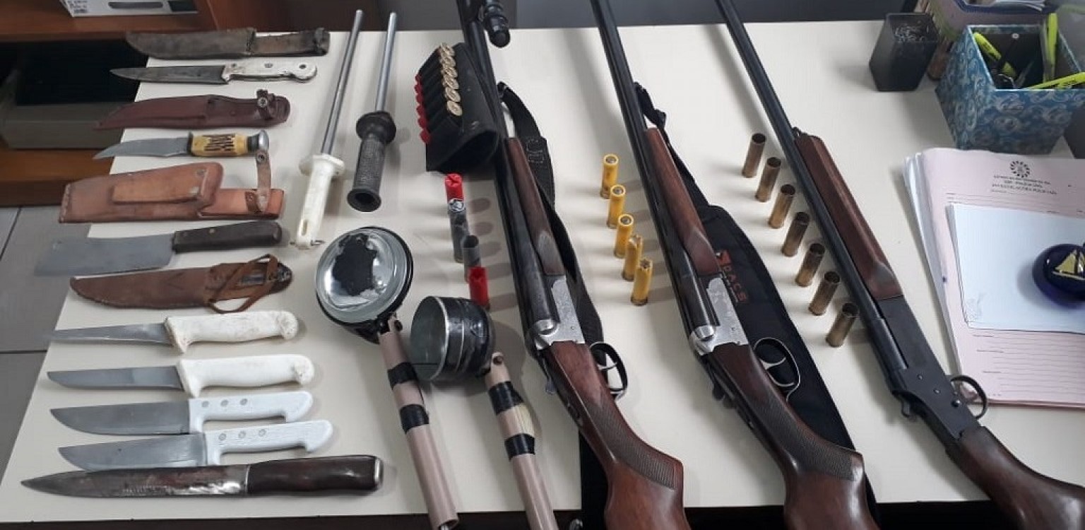 Com eles, os policiais localizaram três armas, munições e facas. Foto: Divulgação/Patram