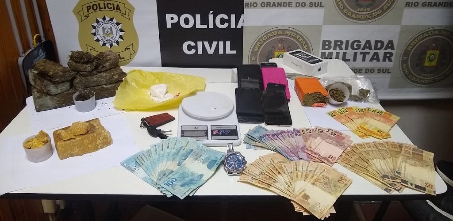 Um homem, de 23 anos, foi preso e um adolescente, com idade não informada, apreendido pelo crime de tráfico de drogas, em Jaguarão. Os flagrantes aconteceram nesta segunda-feira, durante o cumprimento de mandados de busca e apreensão no bairro Vencato.