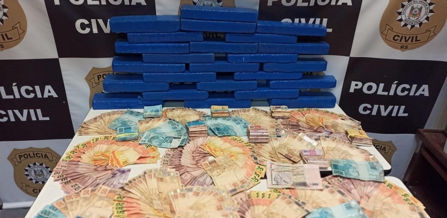 PC DE JAGUARÃO APREENDE R$ 25 MIL E 13 KG DE MACONHA