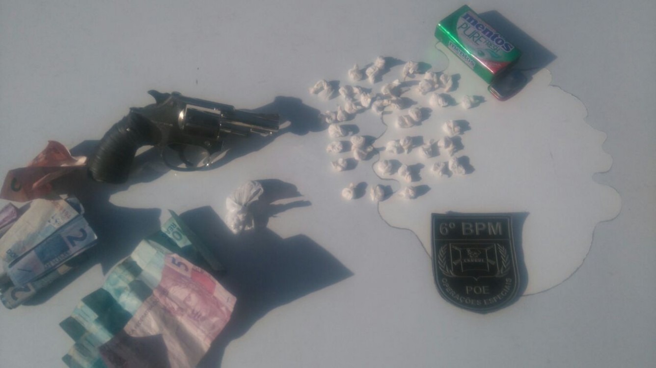 Na tarde de ontem, durante patrulhamento de rotina, os policiais abordaram um grupo no bairro Ferrari, momento em que um adolescente, de 15 anos, largou no chão um revólver calibre 22, com sete munições intactas. Na sequência da revista pessoal, os brigadianos encontraram em poder de um jovem, de 18 anos, um pote com 37 pedras de crack, quatro munições de calibre 22 e também a quantia de R$ 284,00 em dinheiro.