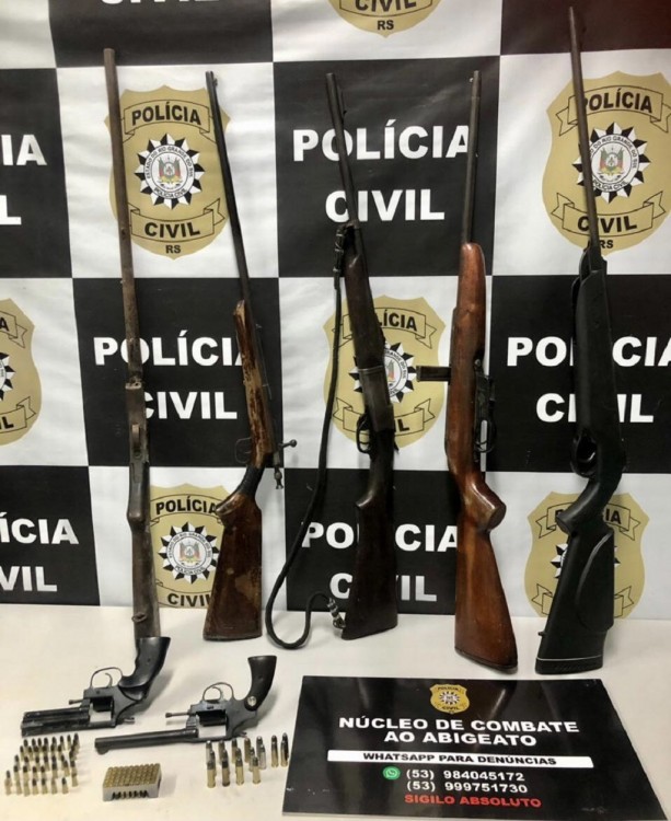 A Polícia Civil, através do Núcleo de Combate ao Abigeato, apreendeu sete armas de fogo, entre revólveres e carabinas, além de farta quantidade de munições, em Rio Grande.