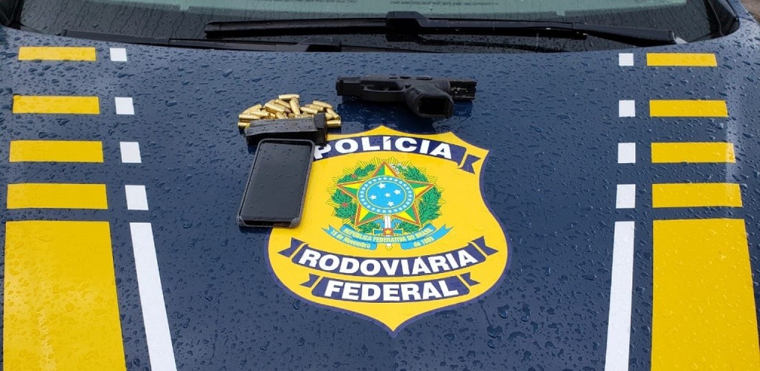 Os patrulheiros deram ordem de parada para um veículo, com placas de Gravataí, e durante a vistoria localizaram uma pistola calibre nove milímetros. Foto: Divulgação/PRF