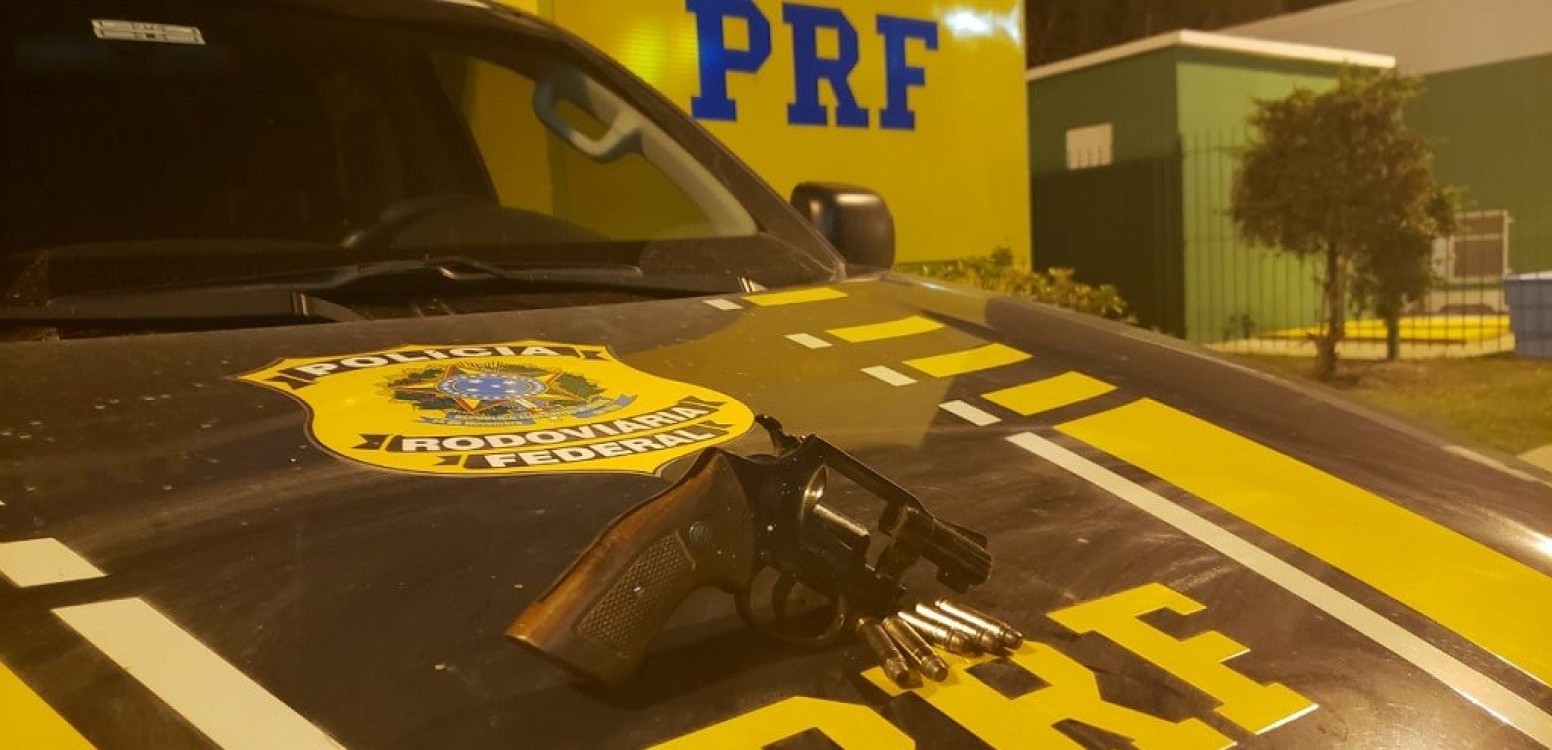 O revólver calibre 38 estava municiado com cinco cartuchos intactos. Foto: Divulgação/PRF