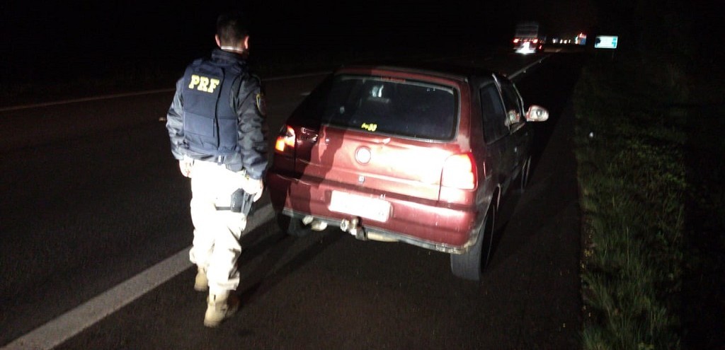 No interior do veículo foram encontradas roupas, mochilas, notas de dinheiro manchadas e a fita isolante usada na adulteração das placas. Foto: Divulgação/PRF