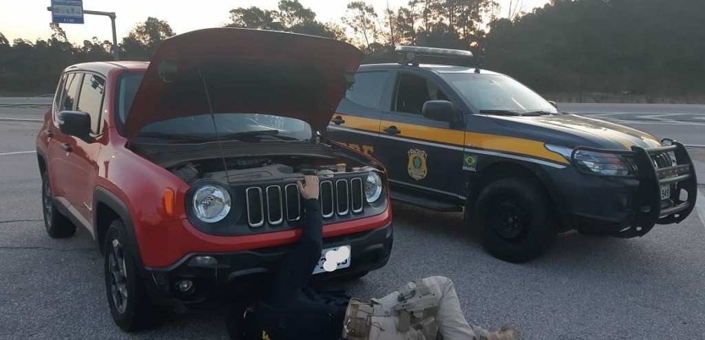 Ao longo da ação, os patrulheiros foram informados de que um dos veículos utilizados pelos bandidos estaria circulando na rodovia com fita isolante na placa para alterar os números e despistar os policiais. De posse das características do automóvel, os agentes passaram a fazer o monitoramento da situação.