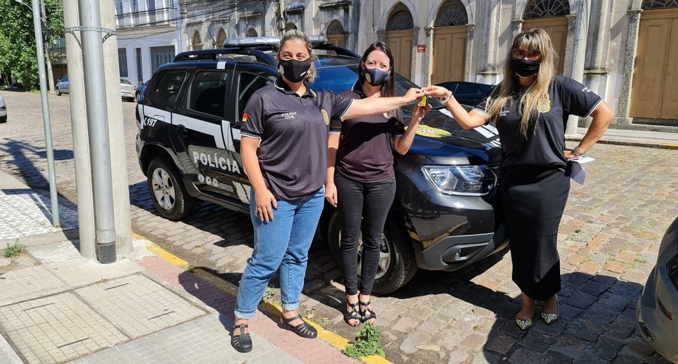 A delegada Paula Vieira Garcia e a equipe da Delegacia Especializada no Atendimento à Mulher (Deam) receberam, na tarde desta quarta-feira, as chaves da primeira viatura semiblindada da Polícia Civil, em Rio Grande. O veículo foi entregue na manhã de ontem pelo governador Eduardo Leite, junto a outras que foram repassadas para municípios do interior do estado.
