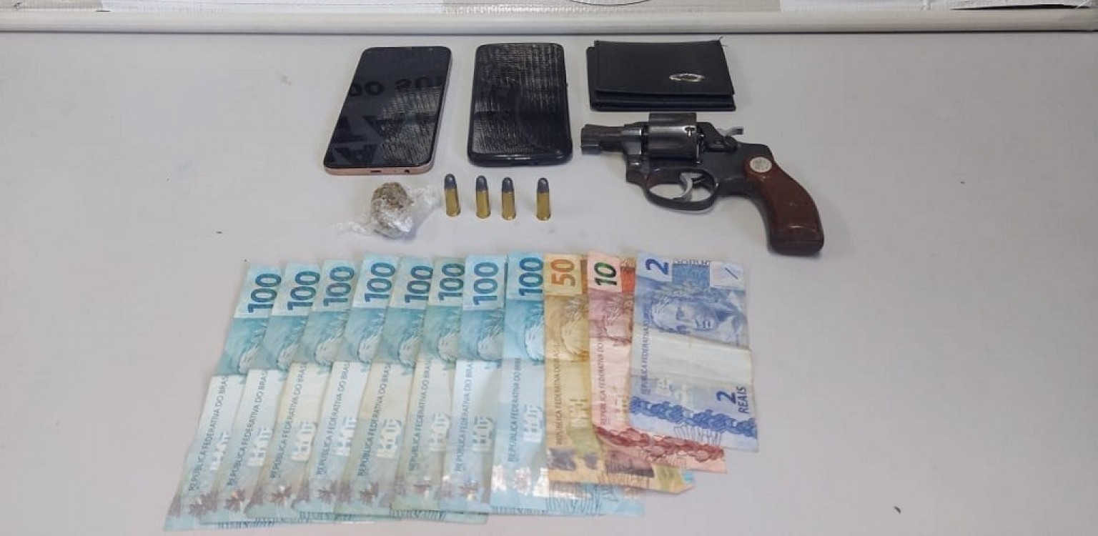 Na revista pessoal, os brigadianos localizaram com eles um revólver calibre 32, carregado com quatro munições, uma porção de maconha e a quantia de R$ 862 em dinheiro. Ambos receberam voz de prisão e foram encaminhados à Delegacia de Polícia de Pronto Atendimento (DPPA) para o registro da ocorrência.