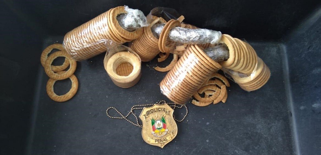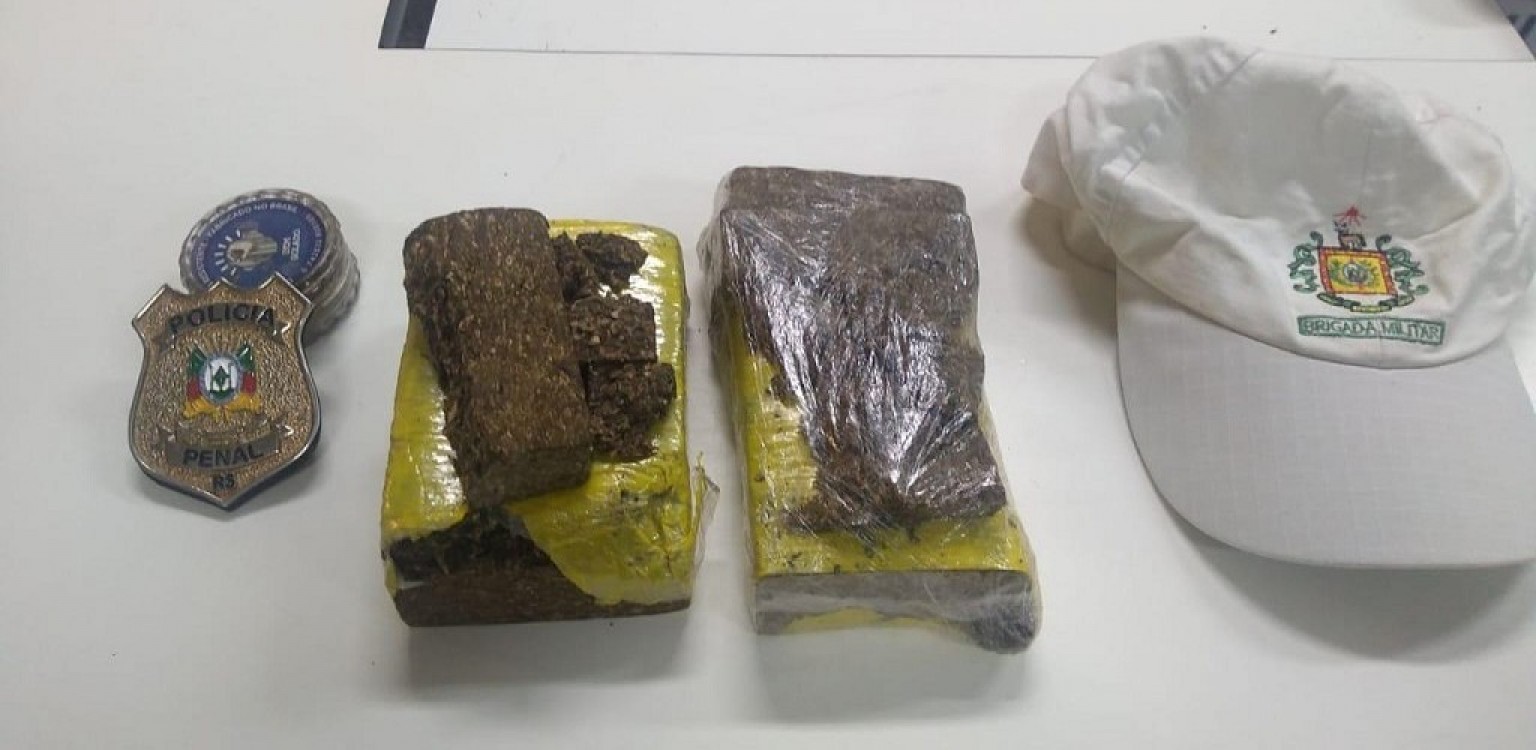 Após uma busca minuciosa, foram localizados dois invólucros de maconha pesando aproximadamente 985 gramas. Foto: Divulgação/Susepe