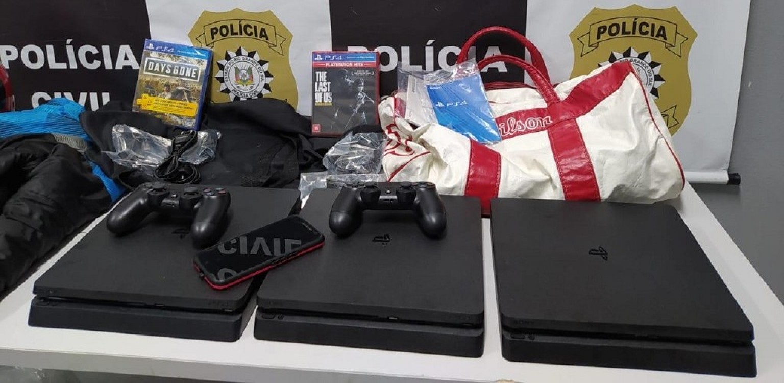 Os objetos haviam sido roubados durante um assalto cometido contra uma loja de games, localizada no centro da cidade. Foto: Divulgação/PC