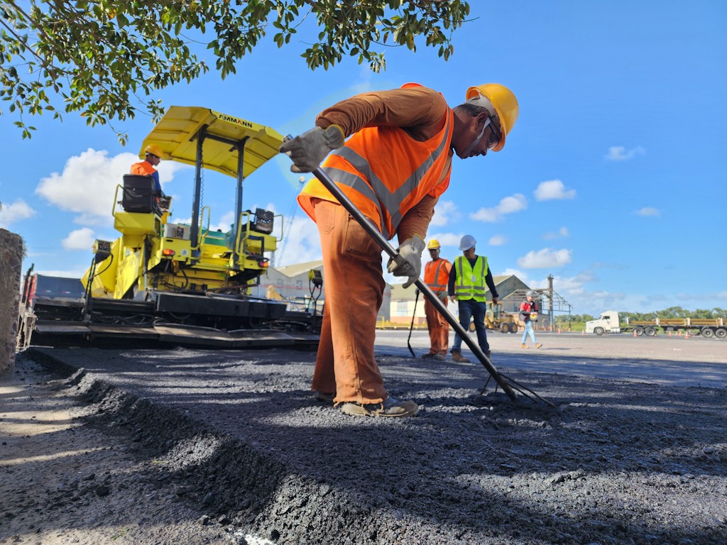 A empresa trabalhará com uma frota operacional composta por um caminhão espargidor, que faz a aplicação da camada de ligação entre o pavimento existente e a nova camada, caminhões caçamba para o transporte do asfalto, rolos compactadores e vibro acabadoras, máquinas que fazem a distribuição uniforme da massa asfáltica sobre o piso, após a regularização feita pelas motoniveladoras.