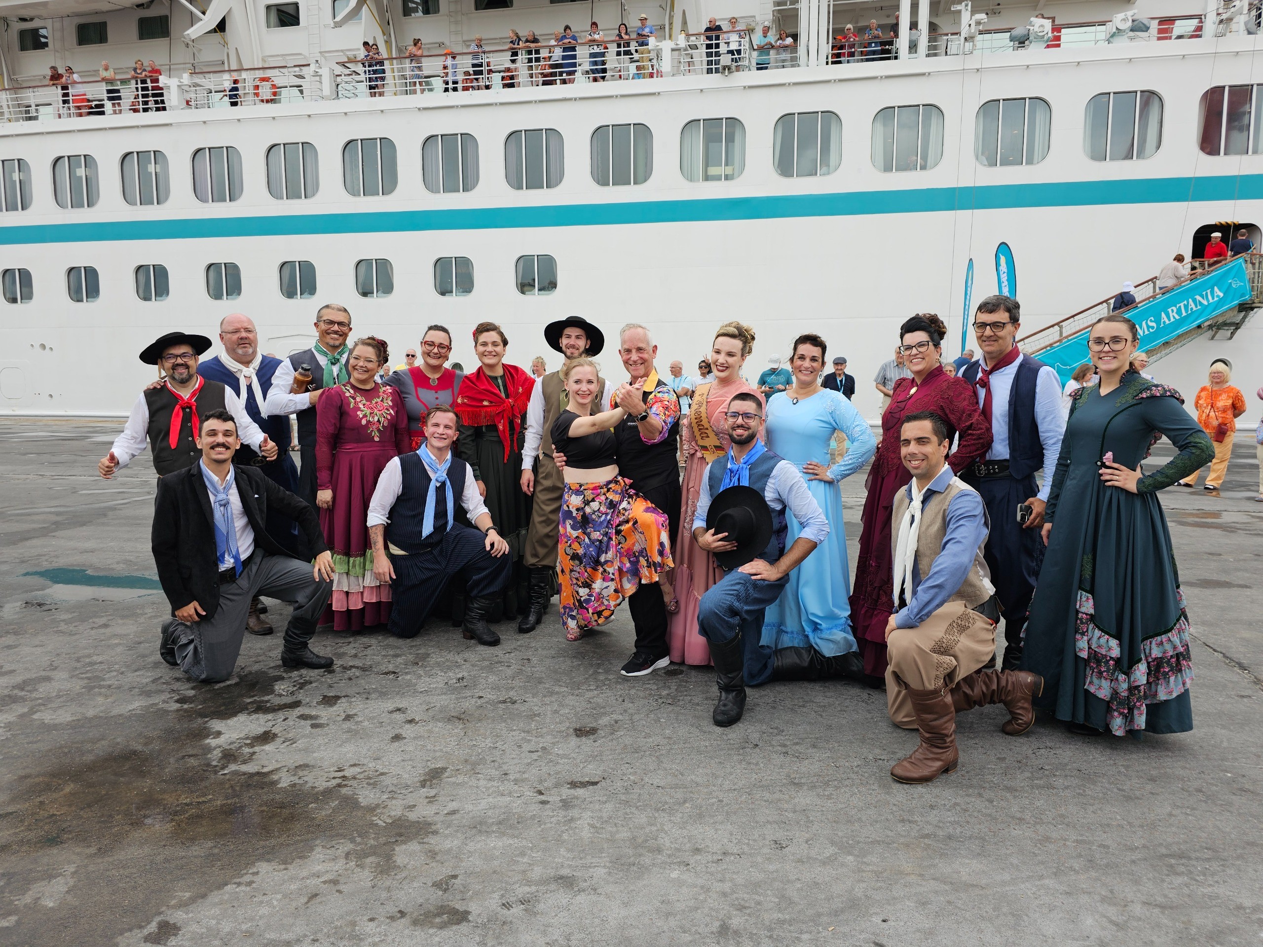 A chegada do navio foi marcada por uma recepção especial organizada pela Portos RS. No cais, os turistas foram surpreendidos por uma apresentação cultural promovida pelo grupo CCN Sentinela do Rio Grande, que exibiu danças típicas gaúchas. Além disso, os visitantes puderam experimentar a jeropiga, bebida tradicional da região, e explorar artesanatos locais que estavam disponíveis para compra no local.