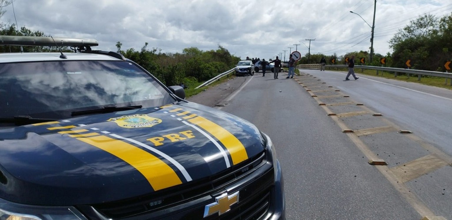 A dinâmica do acidente aponta que o motorista de um Ford Fiesta teria perdido o controle do veículo sobre a ponte próximo a empresa Consulati, momento em que colidiu de frente com a motocicleta conduzida pela vítima fatal. Foto: Divulgação/PRF