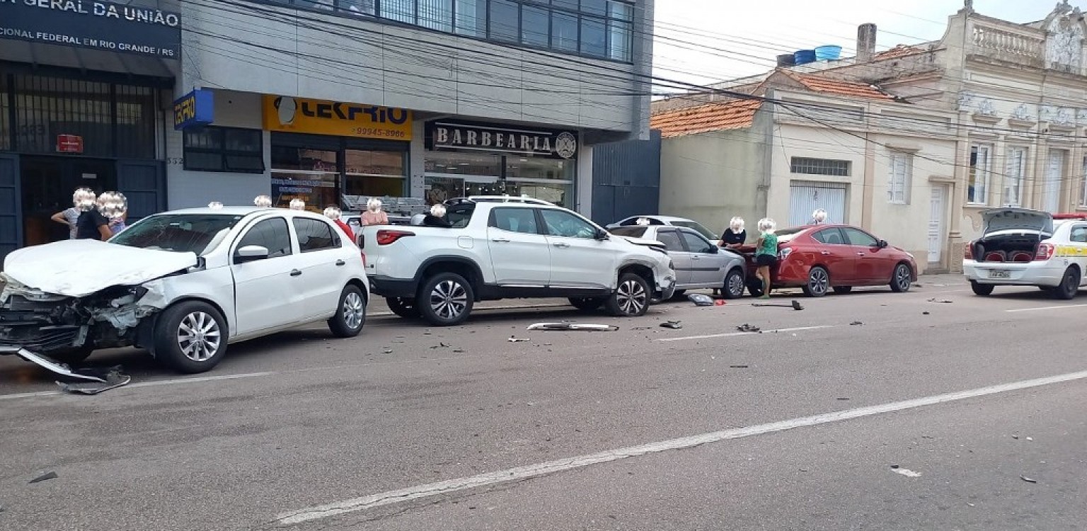 Pelo menos duas pessoas sofreram escoriações em um acidente de trânsito, na tarde desta segunda-feira (27), em Rio Grande. A colisão aconteceu no cruzamento das ruas 24 de Maio com João Alfredo, por volta das 15h45, e em razão da força da batida dois carros que estavam estacionados também foram atingidos.