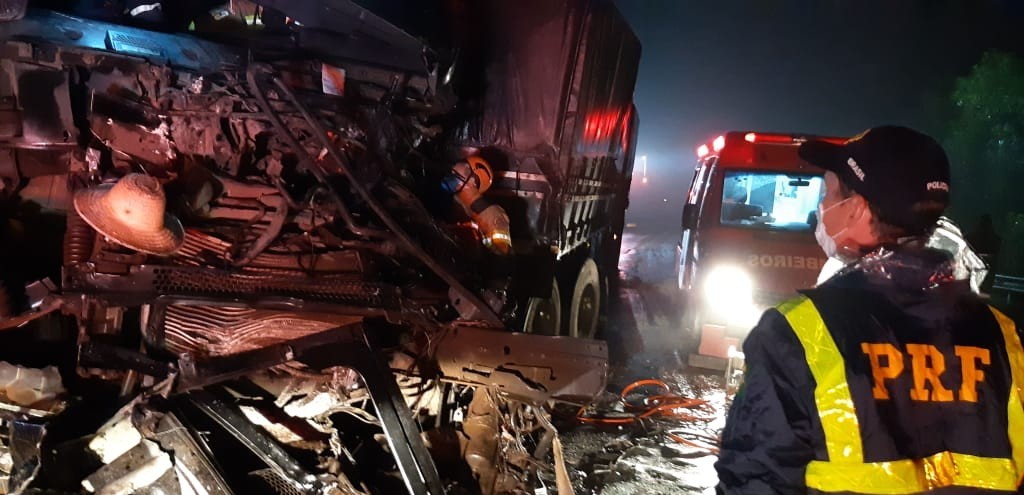 Ainda conforme a PRF, o Chevrolet Monza teria cortado a frente da carreta, que acabou tocando e deixado o veículo atravessado na pista. Posteriormente, ele acabou sendo atingido por um Renault Sandero. Foto: Divulgação/PRF