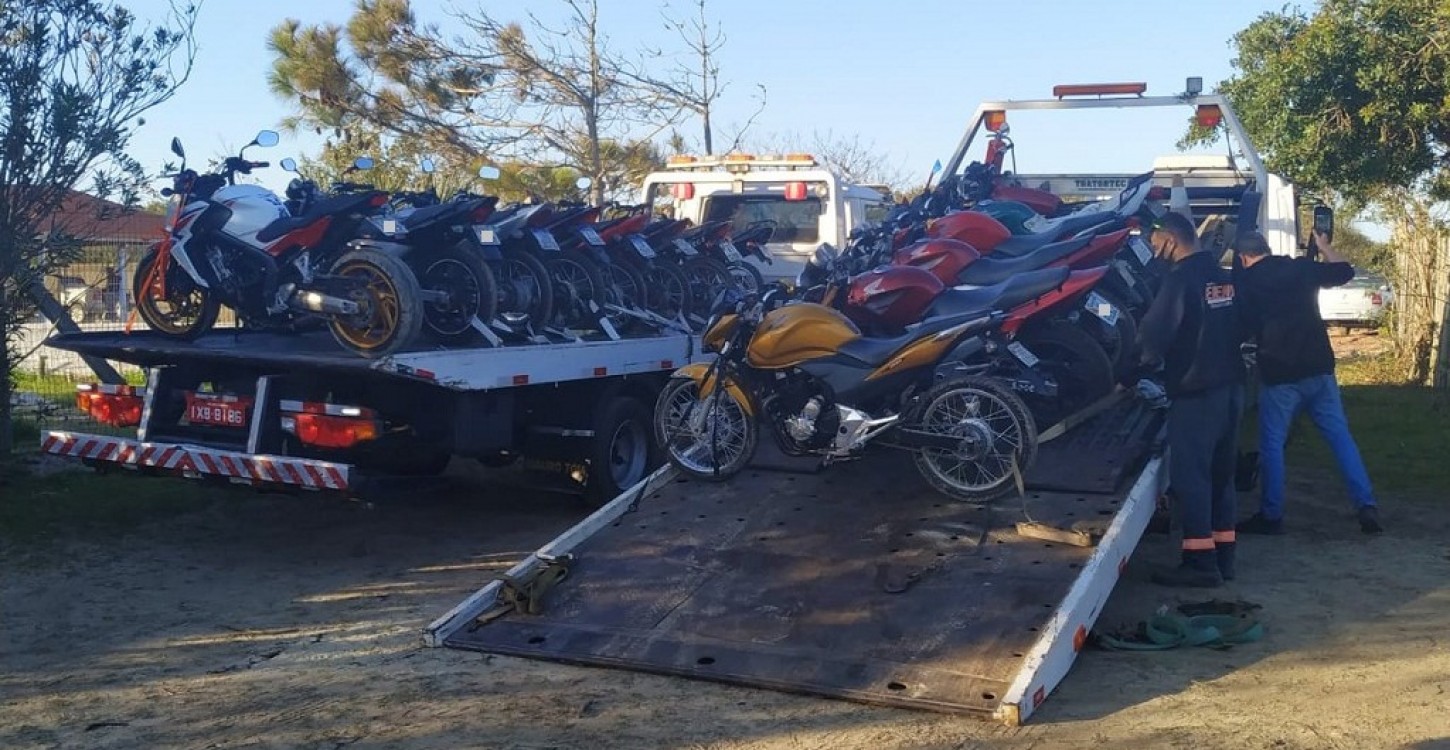 Quatorze motocicletas e um automóvel, que participavam de uma competição, na localidade do Campo do Leopoldo, no Cassino, foram apreendidos pela Brigada Militar e agentes de trânsito, na tarde deste domingo. O efetivo estava participando de uma operação na Via 9, quando recebeu uma denúncia anônima dando conta da realização desta atividade.