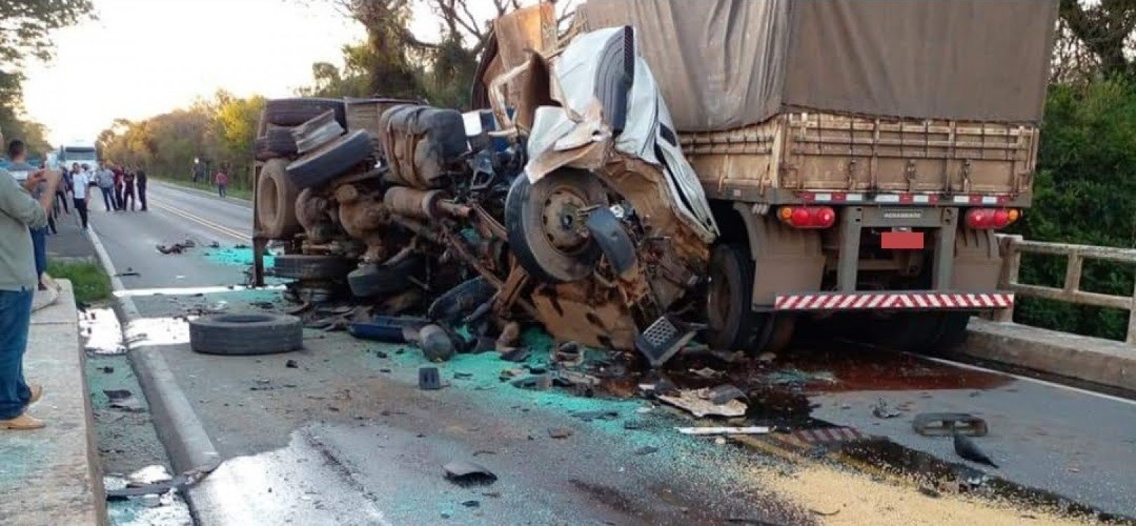 O Corpo de Bombeiros foi acionado e ao chegar no local encontrou as equipes do Serviço de Atendimento Móvel de Urgência (SAMU) já atuando na ocorrência e confirmando as duas mortes. As cabines dos caminhões envolvidos ficaram completamente destruídas e as vítimas acabaram ficando presas nas ferragens.