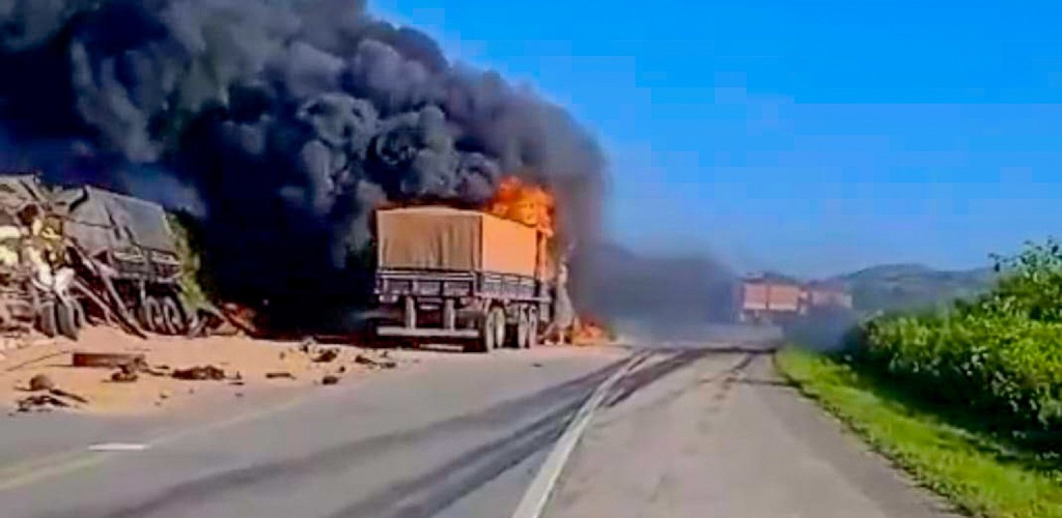 CAMINHÕES INCENDEIAM E MOTORISTAS MORREM APÓS COLISÃO FRONTAL NA BR 392, EM SANTANA DA BOA VISTA