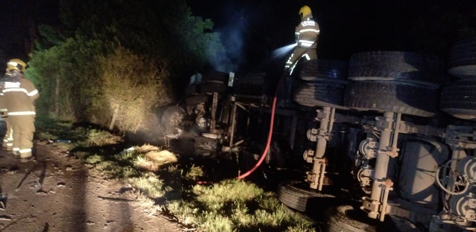 CARRETA PEGA FOGO APÓS ACIDENTE NA BR 392, EM RG