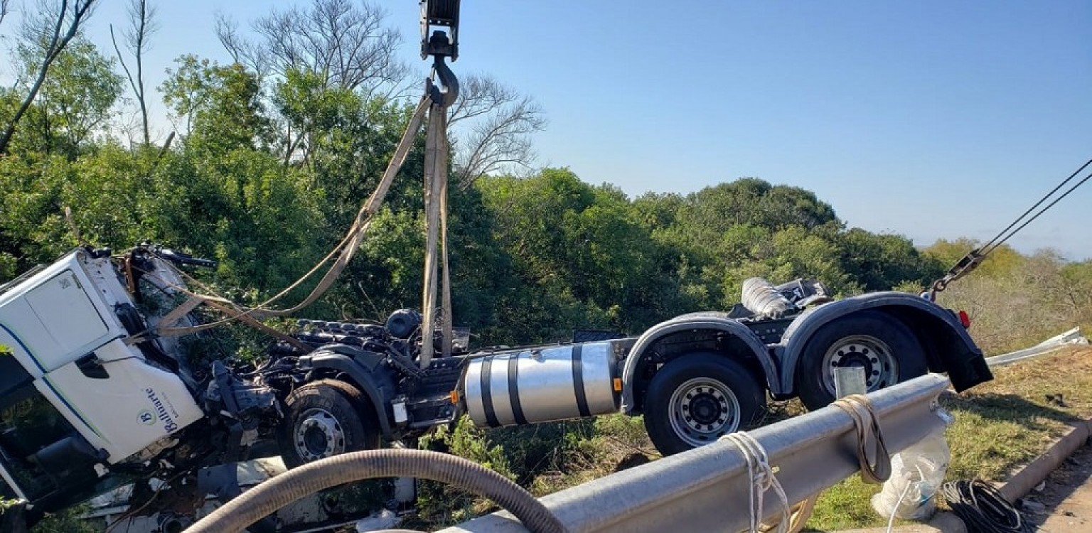 O primeiro a ser retirado do local, distante 800 metros da cabeceira da ponte sobre o canal São Gonçalo, foi o caminhão que era considerado pelo posto de comando da operação como o menos complexo. Durante a tarde será a vez do semirreboque que exigirá uma intervenção mais demorada.